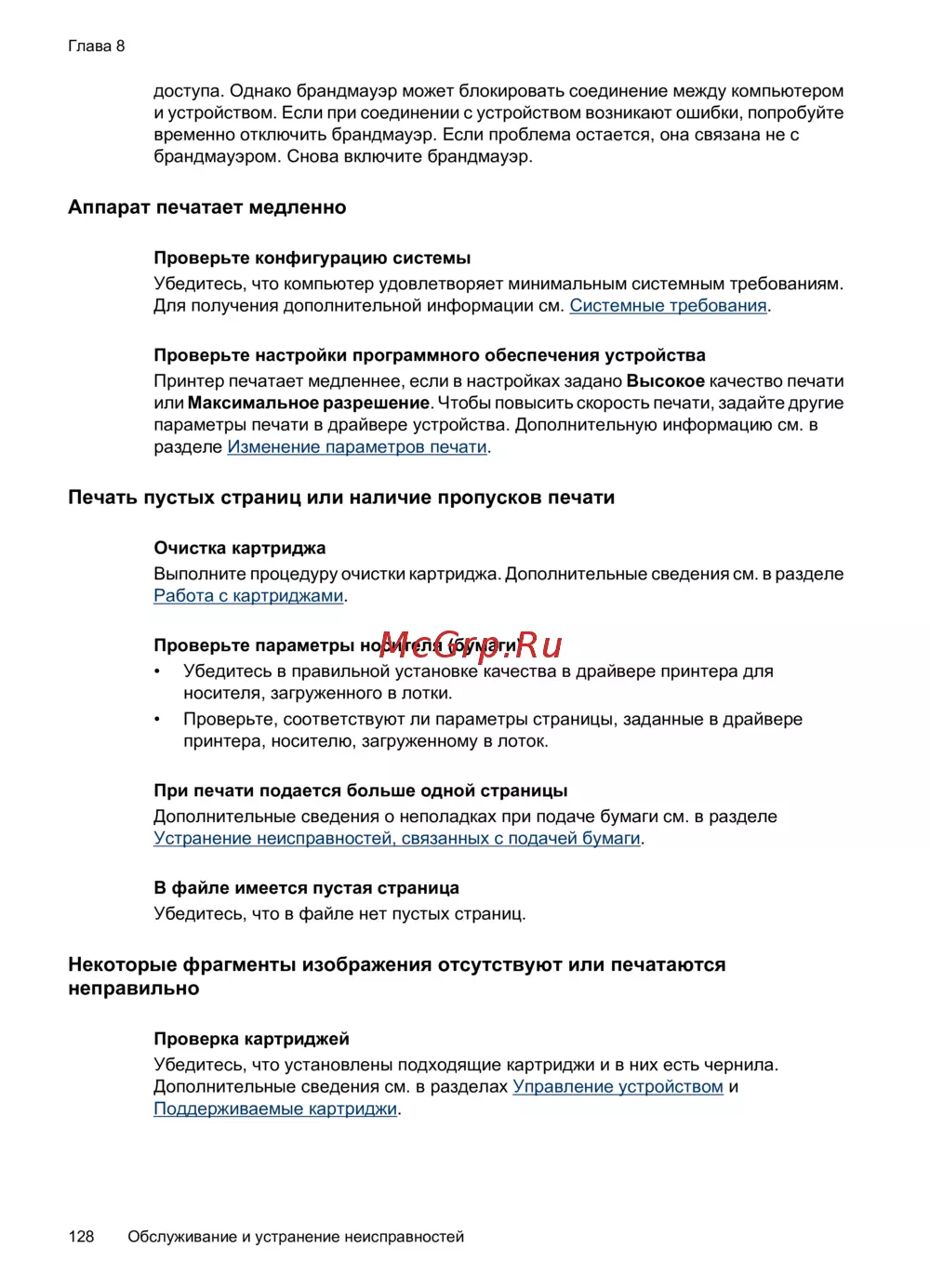 HP OfficeJet J5520 [132/202] Печать пустых страниц или наличие пропусков печати