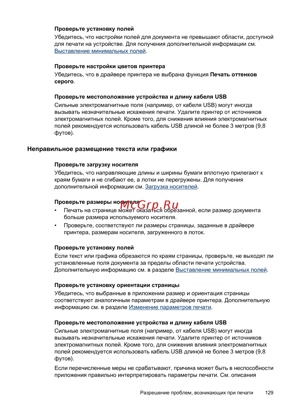 HP OfficeJet J5520 — проверка установки полей и настроек печати для качественной печати [133/202]
