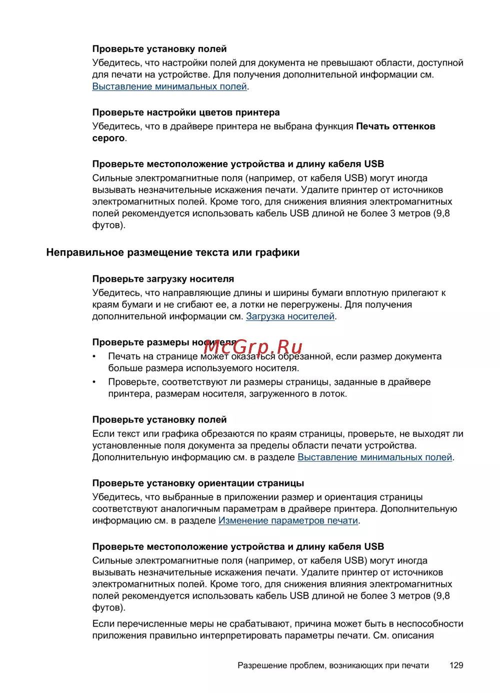 Убедитесь, что настройки полей для документа не превышают области, доступной