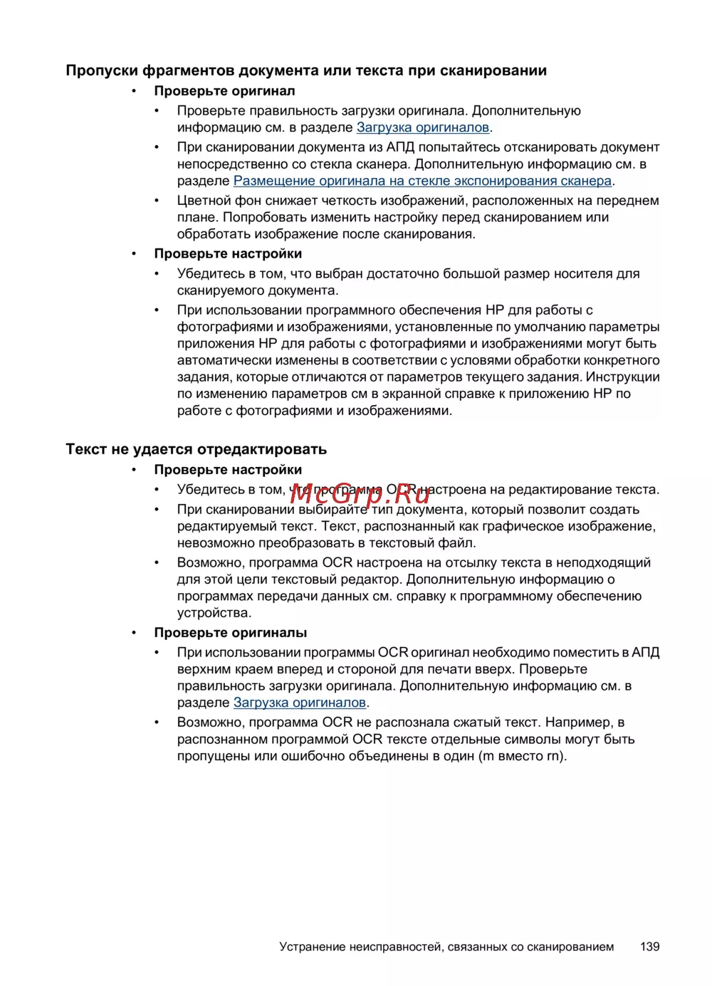 Устранение неисправностей, связанных со сканированием 139