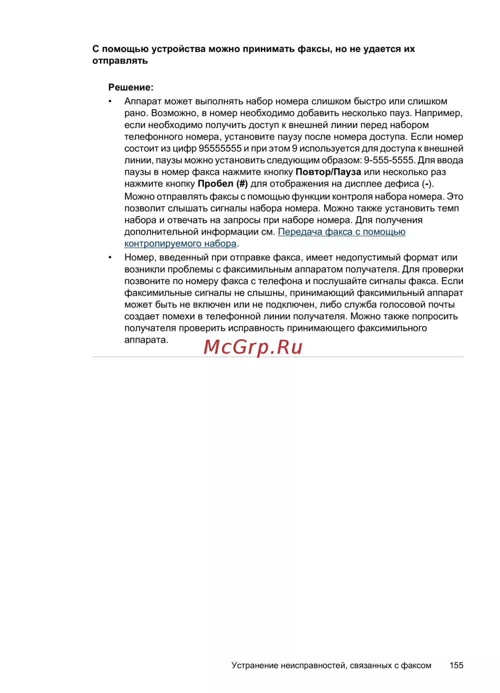 Устранение неисправностей, связанных с факсом 155