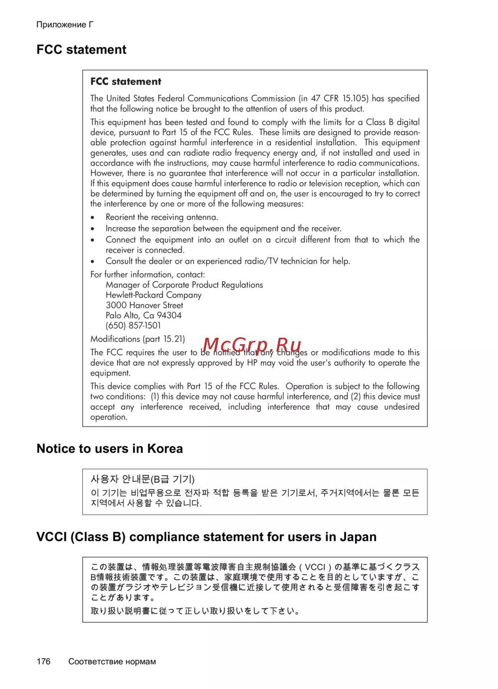 HP OfficeJet J5520 — fCC Compliance Statement for Digital Devices and User Guidance [180/202]