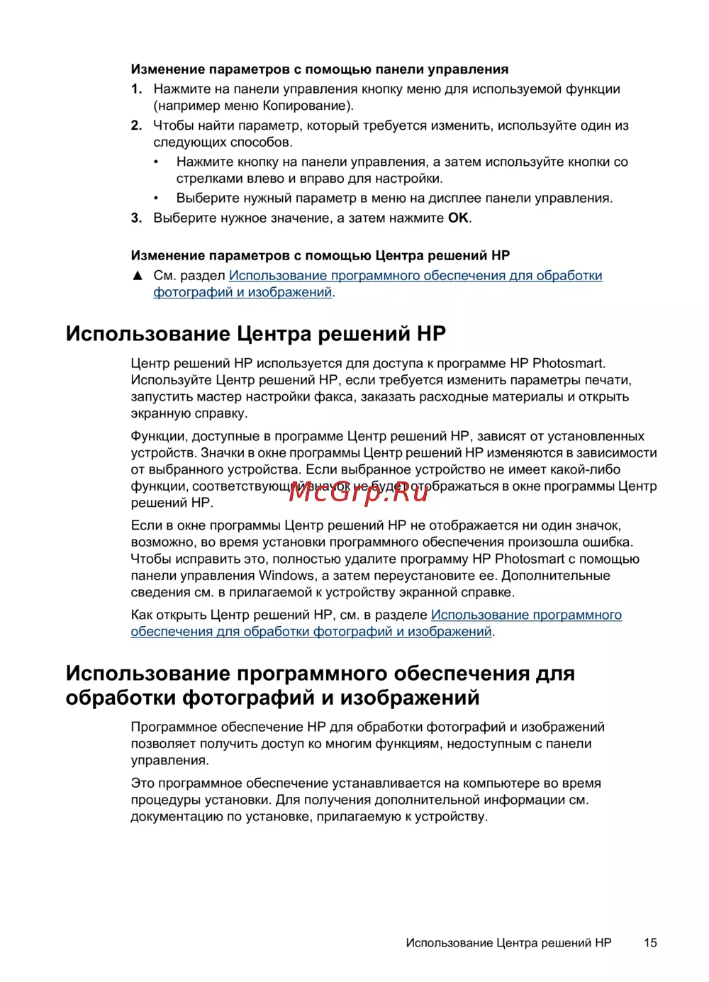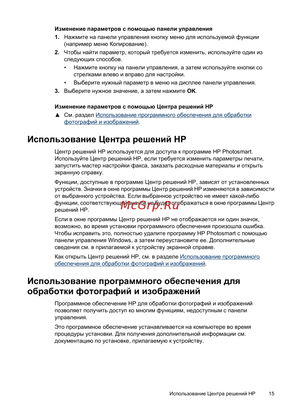 Используйте Центр решений HP, если требуется изменить параметры печати,