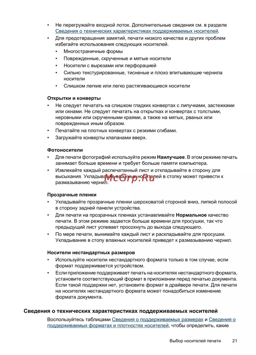 или окнами. Не следует печатать на открытках и конвертах с толстыми,