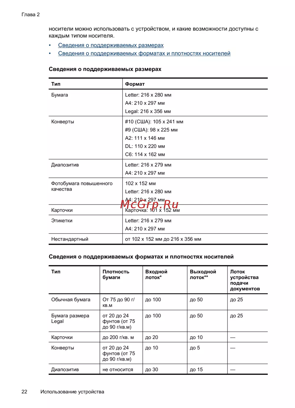 HP OfficeJet J5520 [26/202] Сведения о поддерживаемых форматах и плотностях носителей