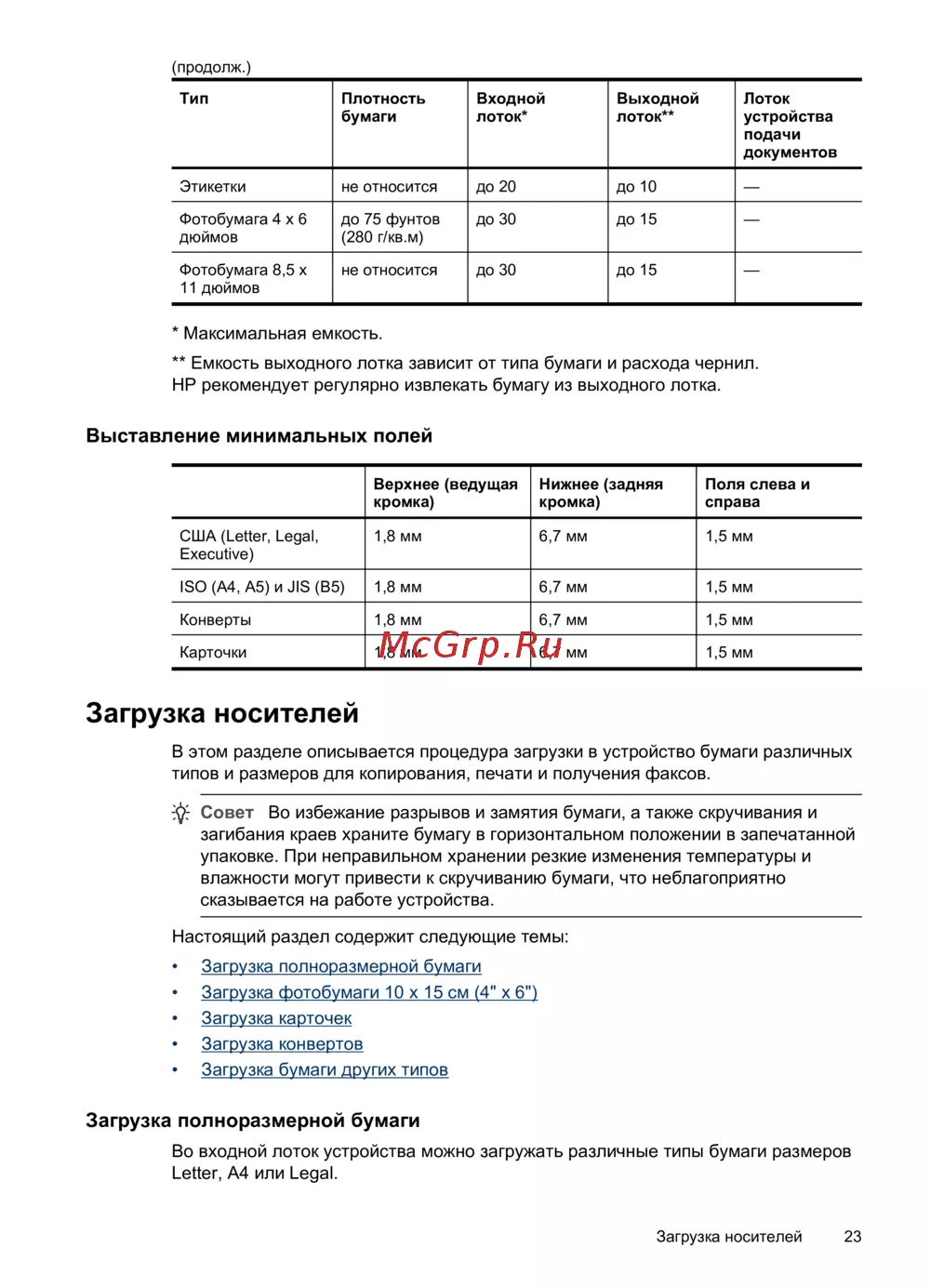 HP OfficeJet J5520 [27/202] Совет во избежание разрывов и замятия бумаги а также скручивания и загибания краев храните бумагу в горизонтальном положении в запечатанной упаковке при неправильном хранен...