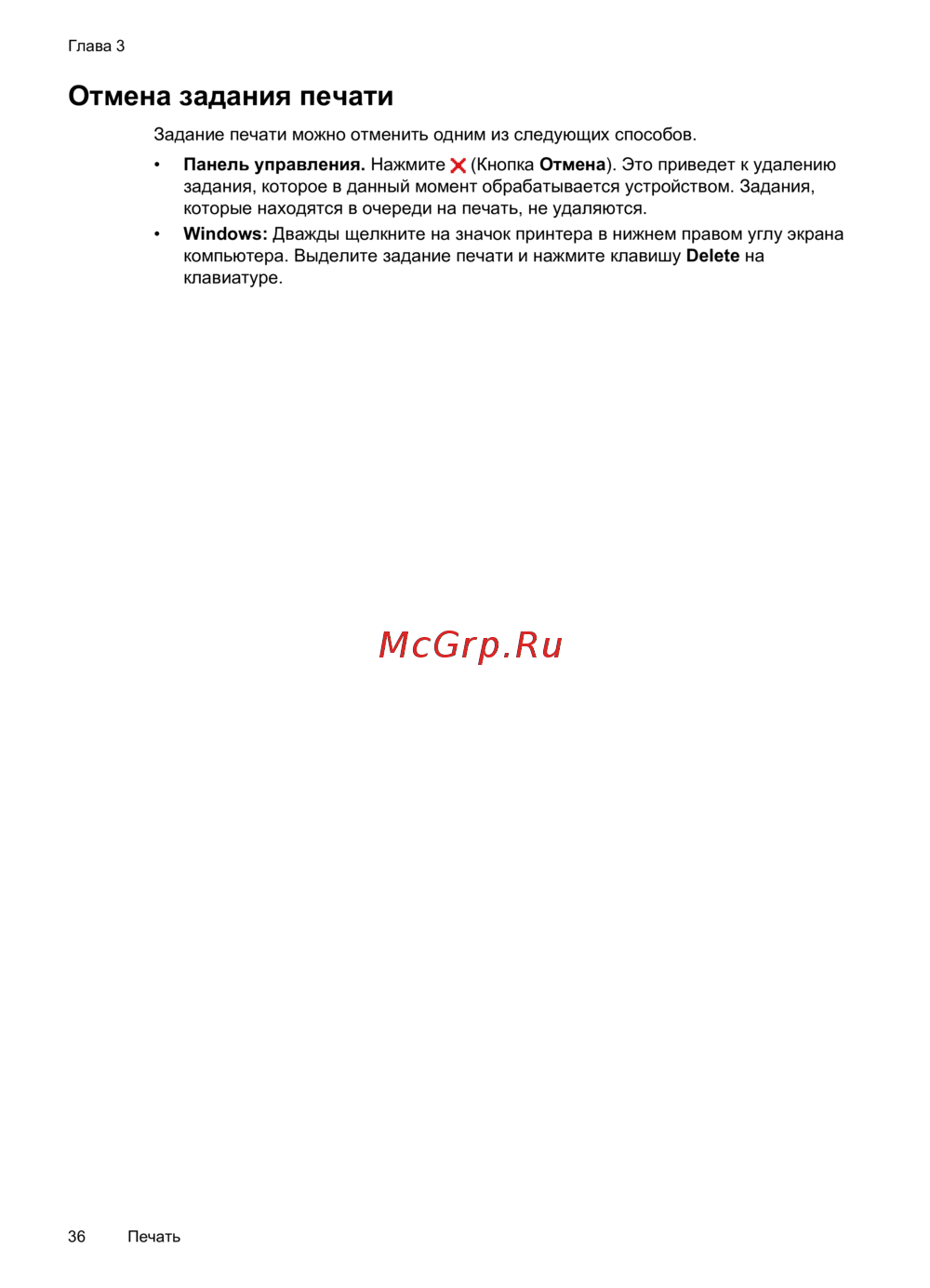 Отмена задания печати