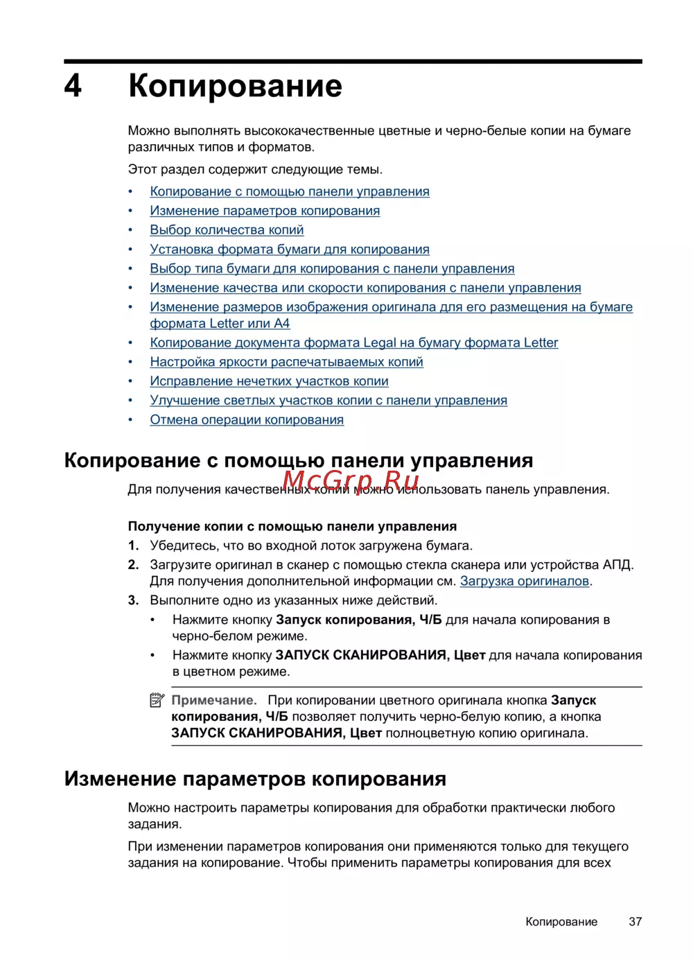 копирования, Ч/Б позволяет получить черно-белую копию, а кнопка