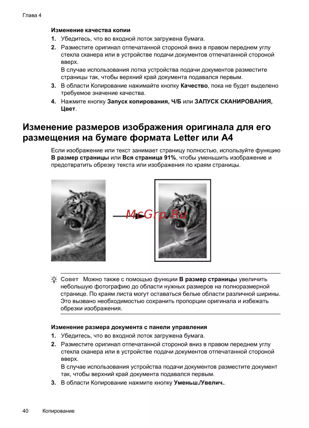HP OfficeJet J5520 [44/202] Изменение размеров изображения оригинала для его размещения на бумаге формата letter или a4