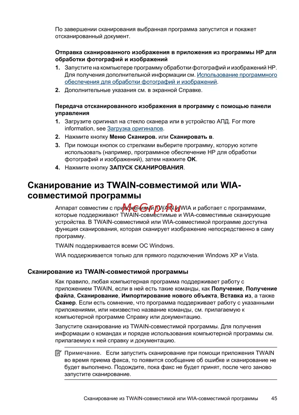 Сканирование из TWAIN-совместимой или WIA-совместимой программы 45
