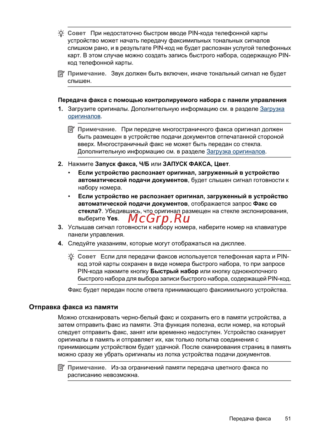 затем отправить факс из памяти. Эта функция полезна, если номер, на который