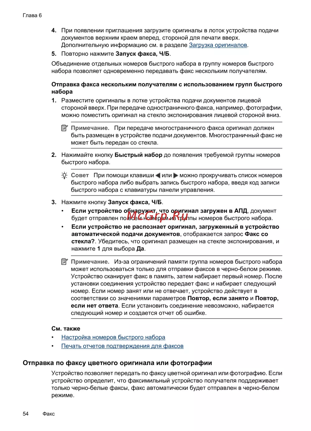 Устройство позволяет передать по факсу цветной оригинал или фотографию. Если