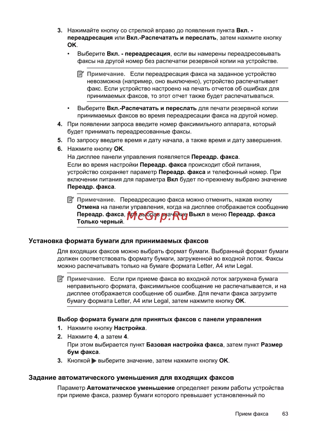 принимаемых факсов во время переадресации факса на другой номер.