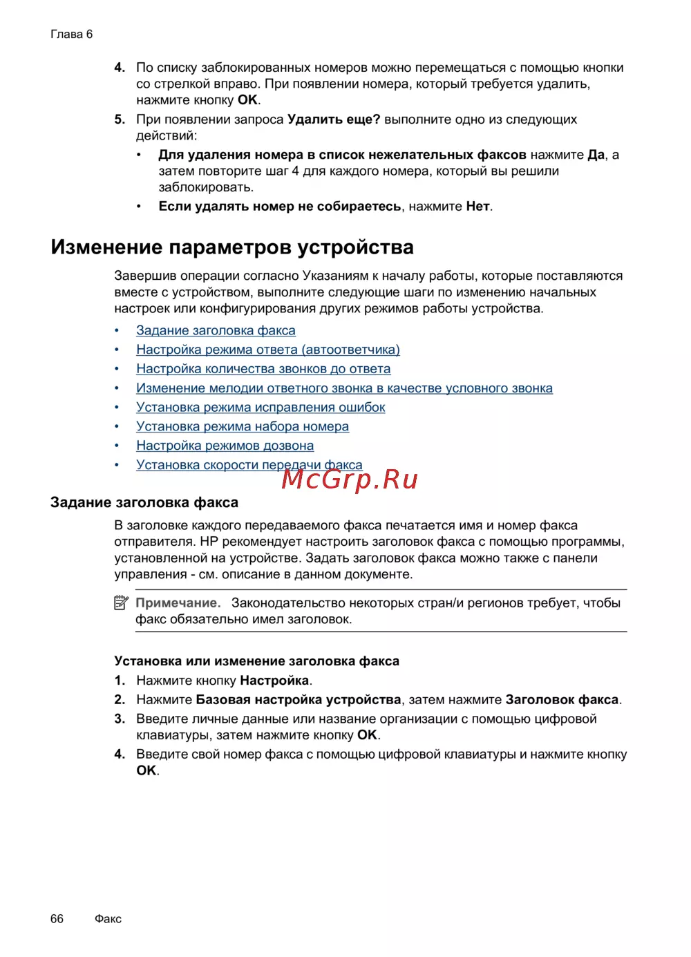 отправителя. HP рекомендует настроить заголовок факса с помощью программы,