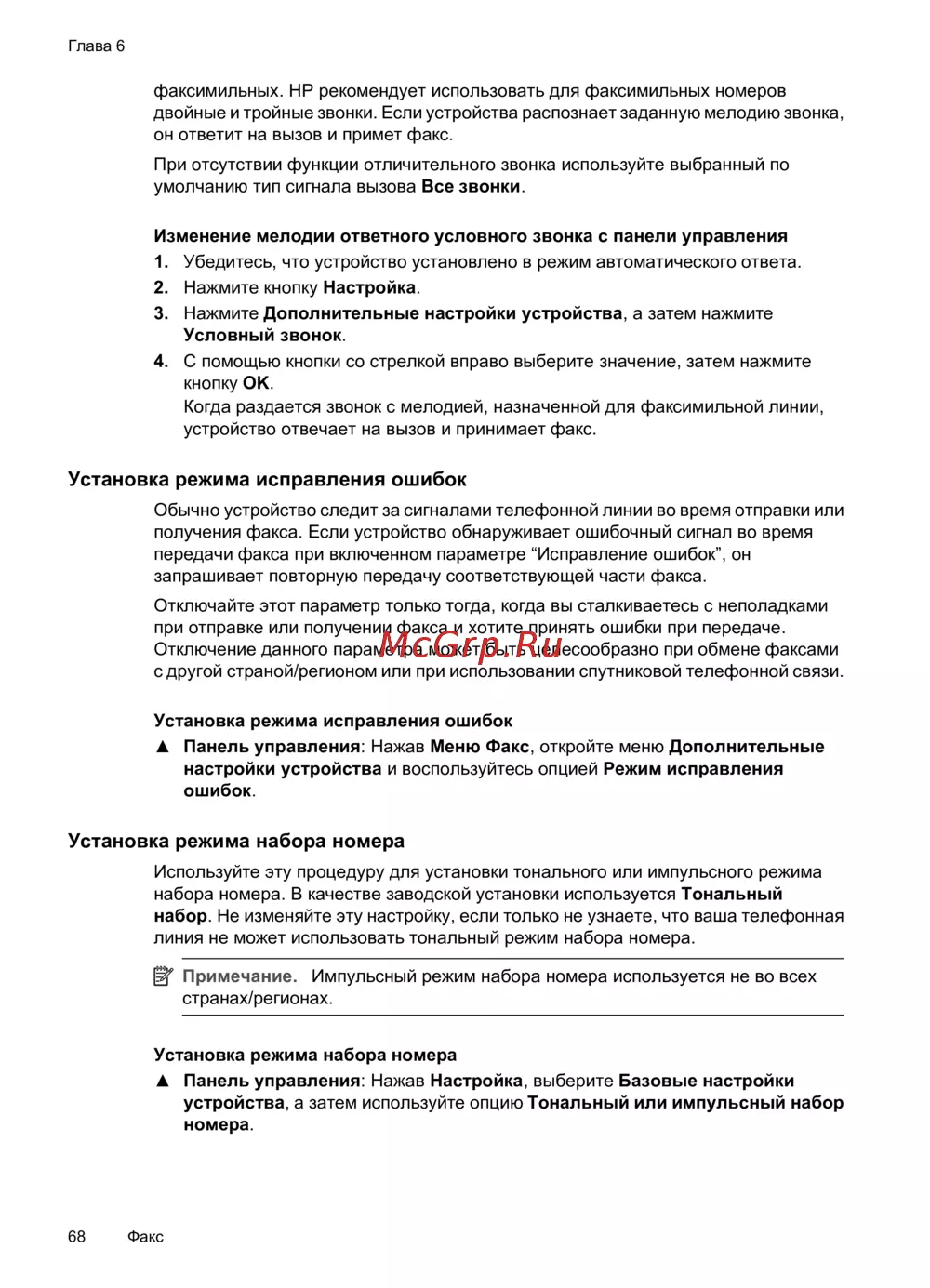 получения факса. Если устройство обнаруживает ошибочный сигнал во время