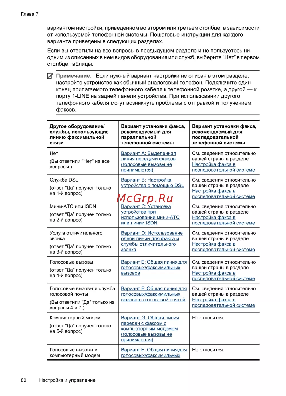 Примечание. Если нужный вариант настройки не описан в этом разделе,