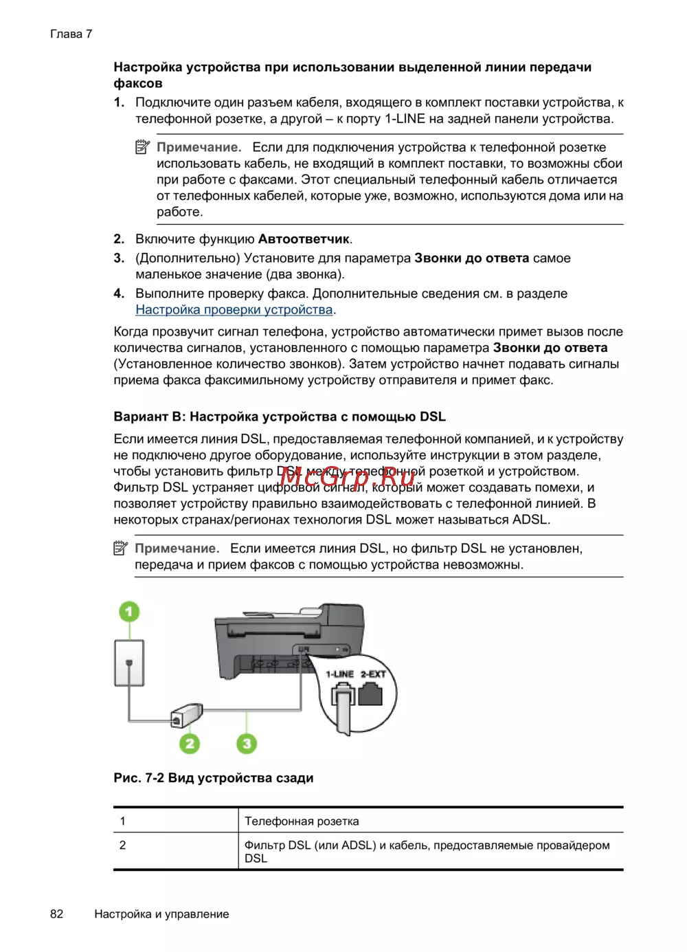 Примечание. Если имеется линия DSL, но фильтр DSL не установлен,