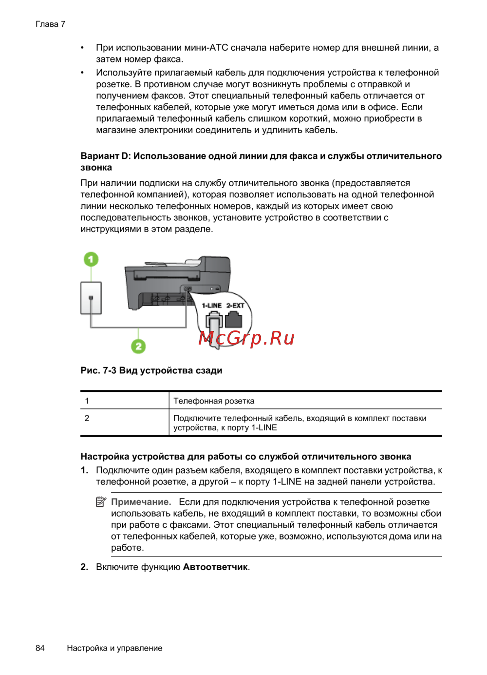 HP OfficeJet J5520 — настройка мини-АТС для факсов и отличительного звонка [88/202]