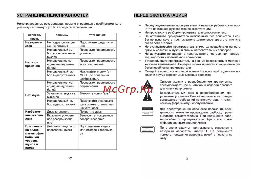 - По степени защиты проигрыватель относится к лазерным аппаратам класса 1 не допускайте прямого попадания лазерных лучей в глаза и на кожу p.3