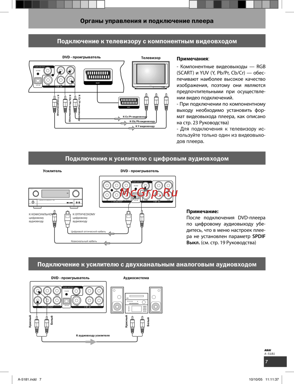 Akai A-5181 — подключение аудиосистемы и DVD-плеера: руководство [8/33]