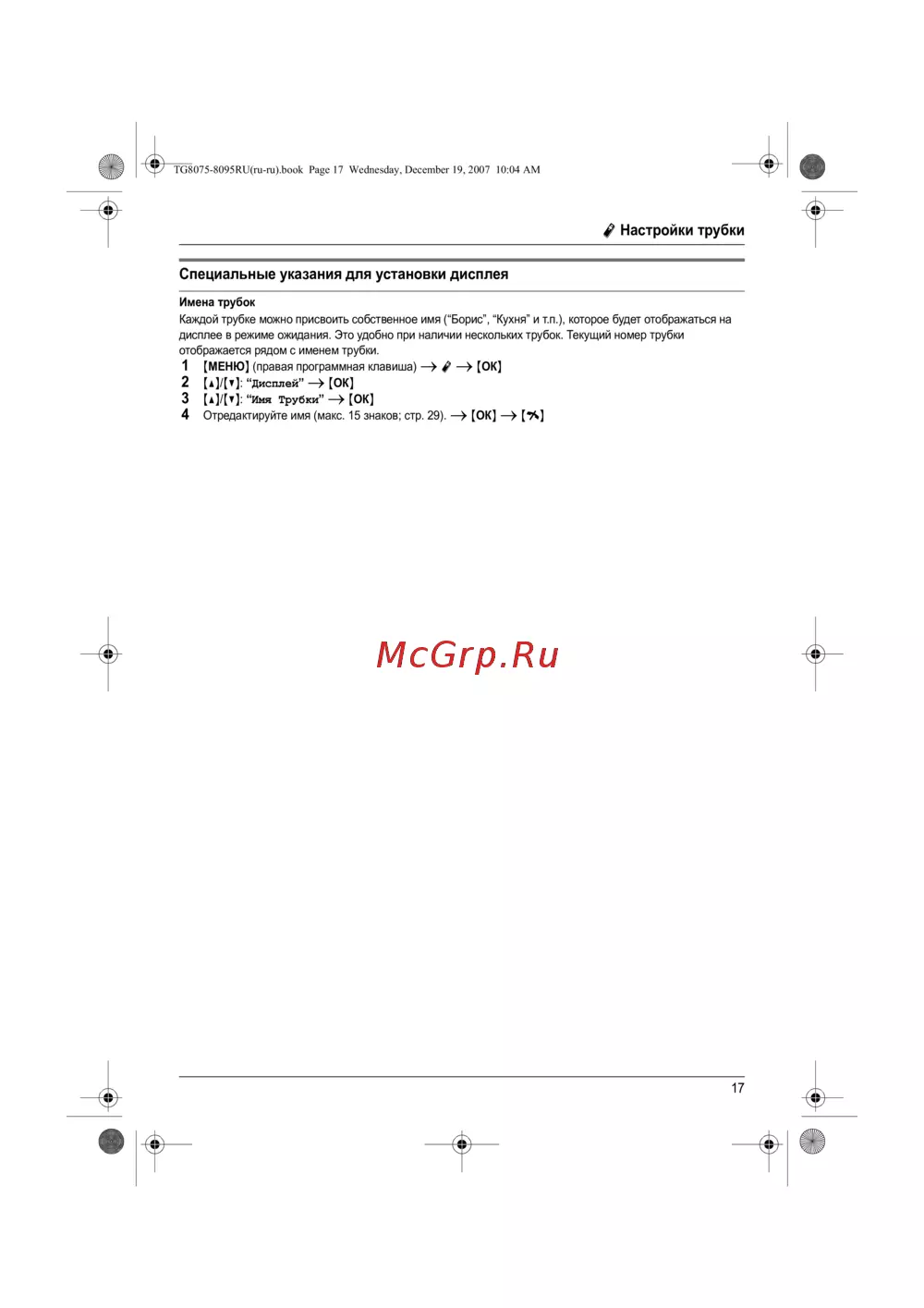 TG8075-8095RU(ru-ru).book Page 17 Wednesday, December 19, 2007 10:04 AM
