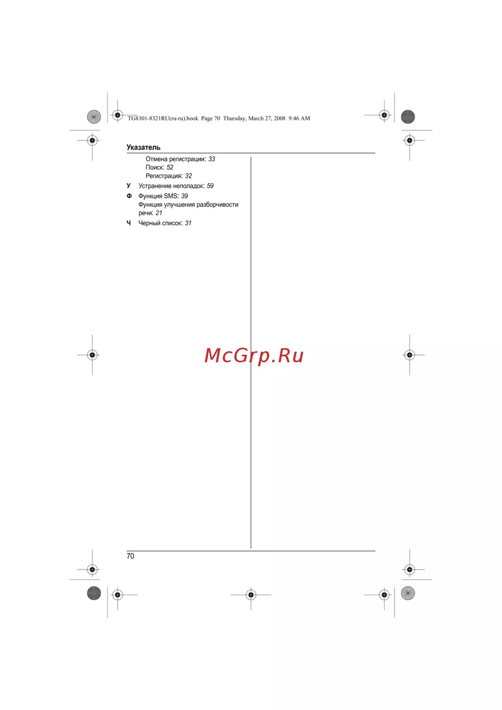 Panasonic KX-TG8321 RU-B [70/72] Указатель