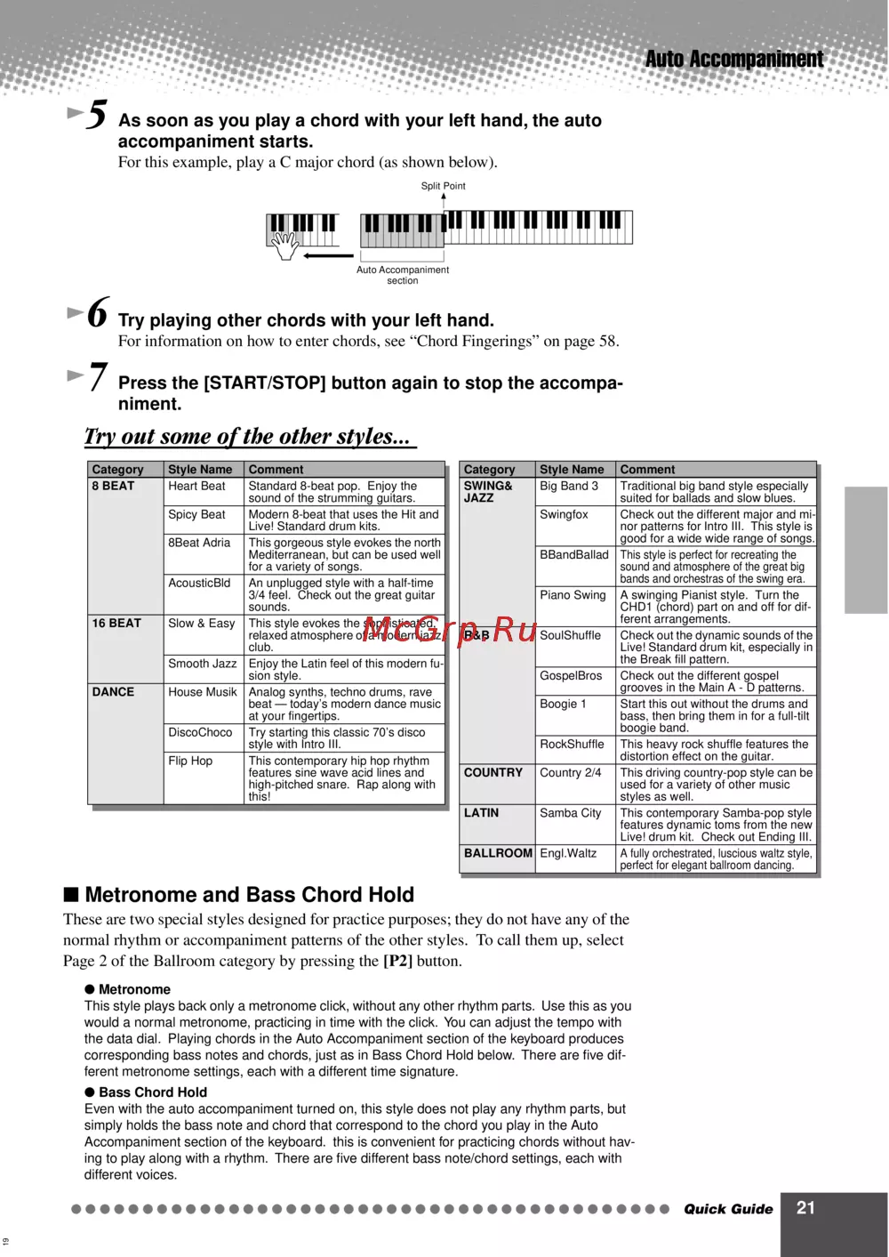 Yamaha PSR-9000 — авто аккомпанемент: руководство по использованию и стилям [21/214]