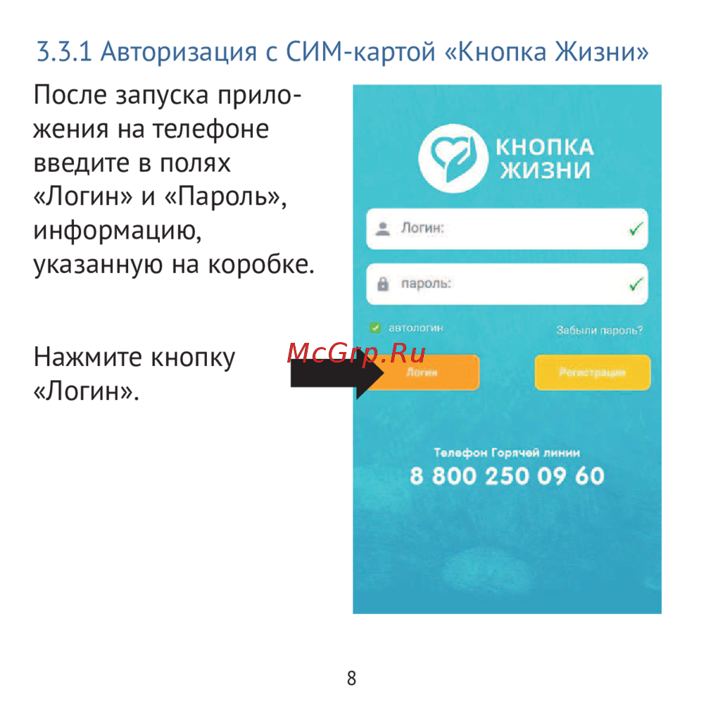 3.3.1 Авторизация с СИМ-картой «Кнопка Жизни»