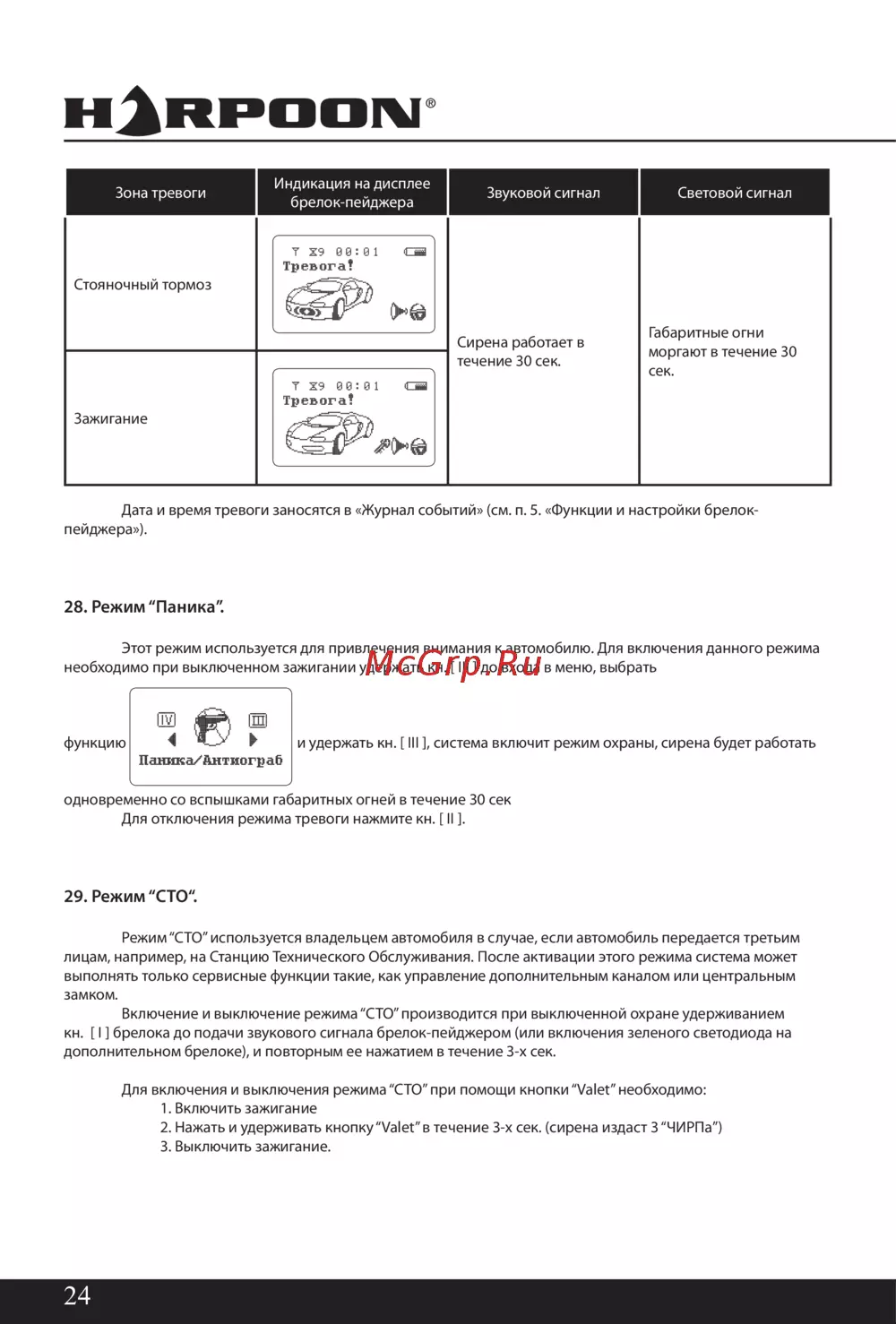 Tomahawk HARPOON BS 3000 — индикация тревоги и режимы охраны автомобиля [24/49]