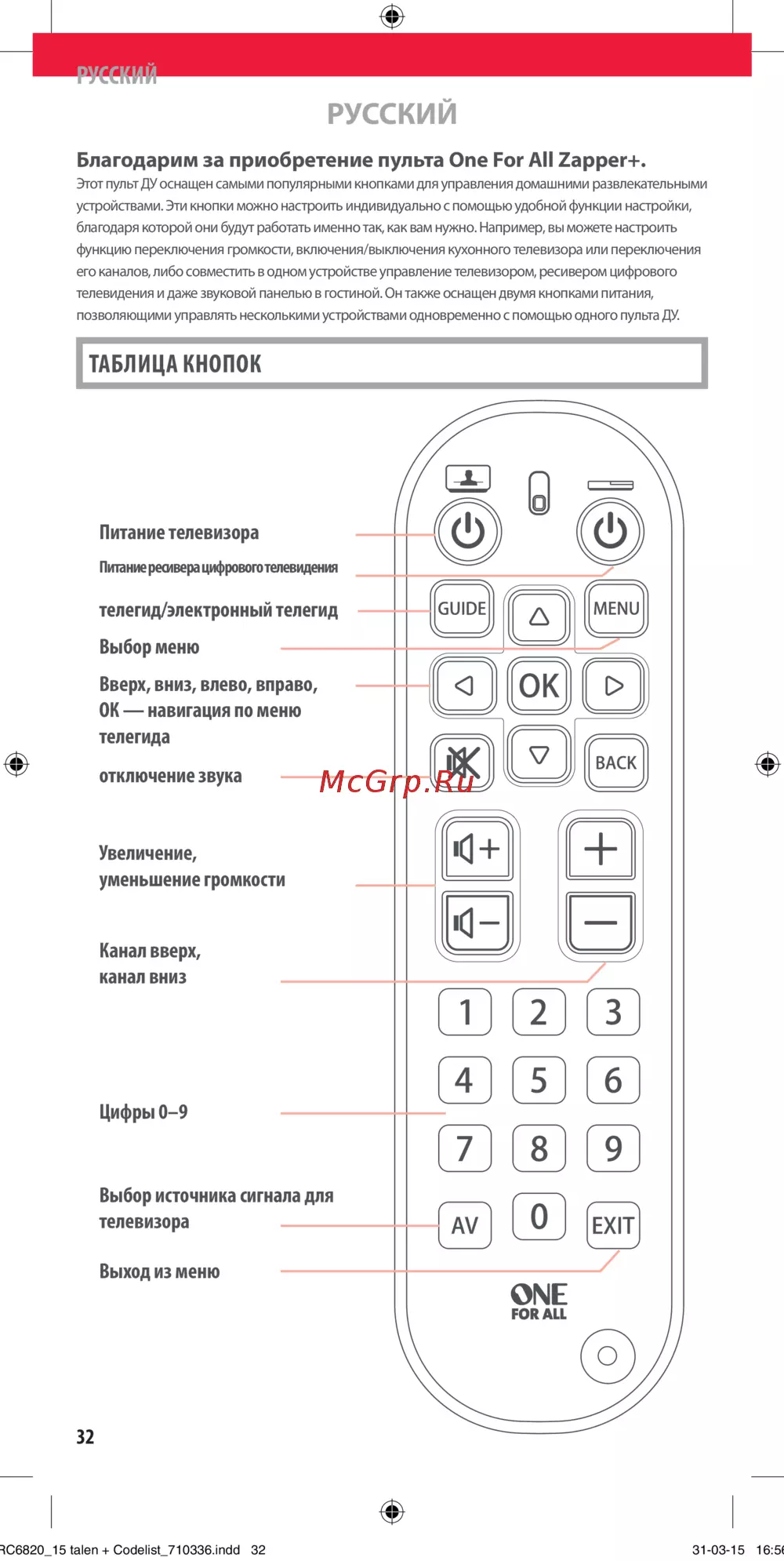 One For All Zapper TV (URC6810)Инструкция по эксплуатации