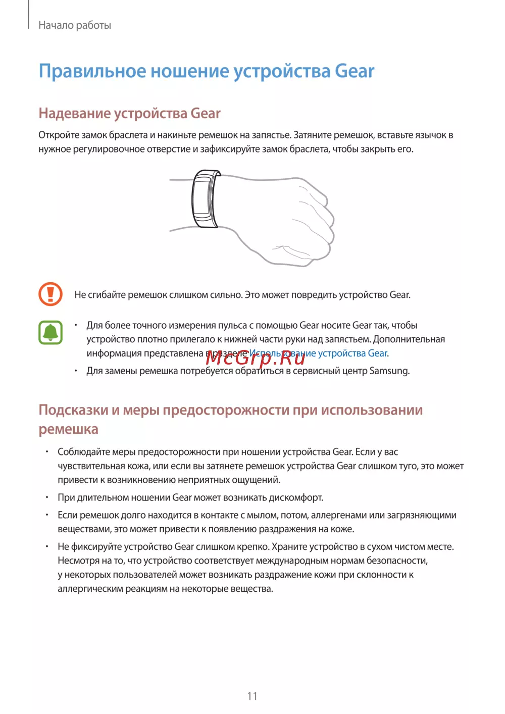 чувствительная кожа, или если вы затянете ремешок устройства Gear слишком туго, это может