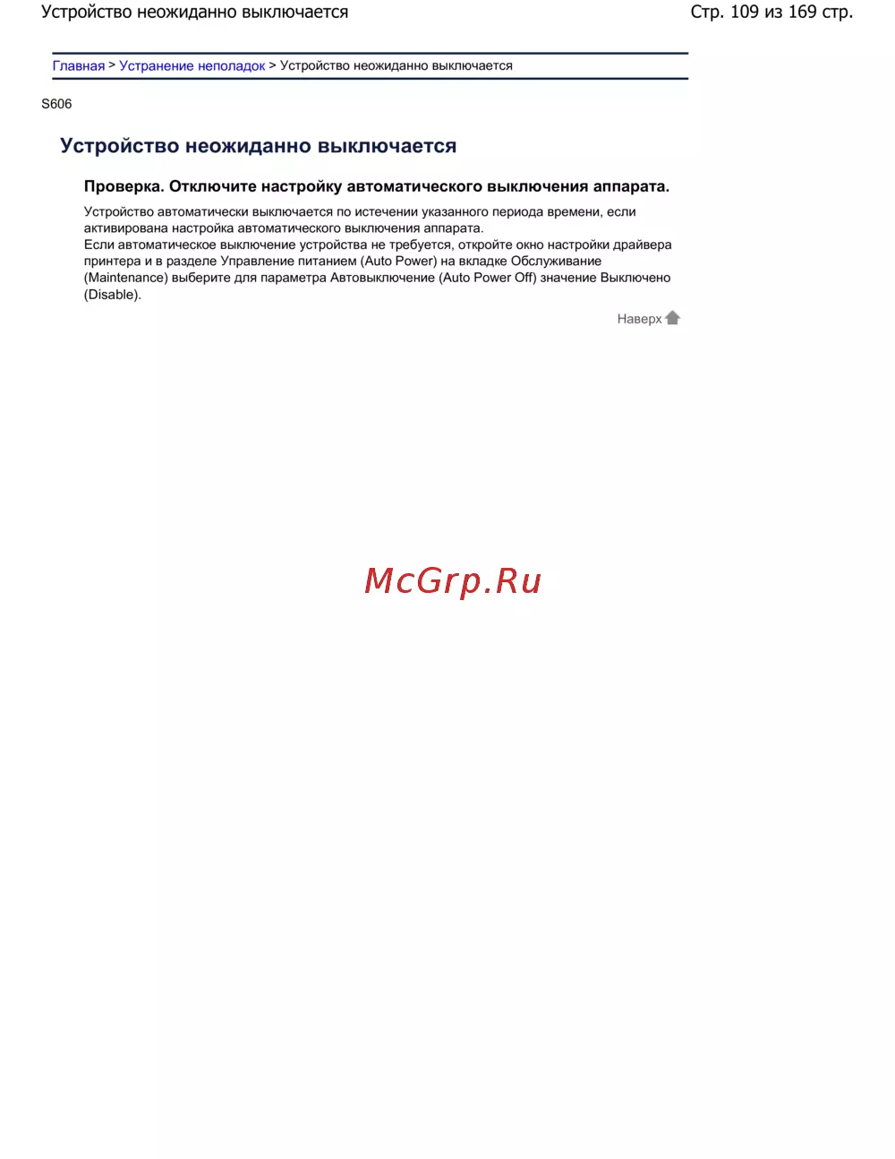 Canon PIXMA MG7140 White — устранение неполадок: устройство неожиданно выключается [109/169]