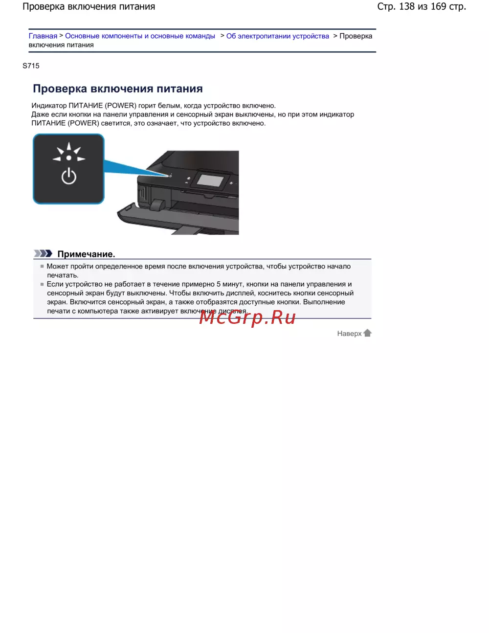 Canon PIXMA MG7140 White — проверка включения питания устройства: основные моменты [138/169]