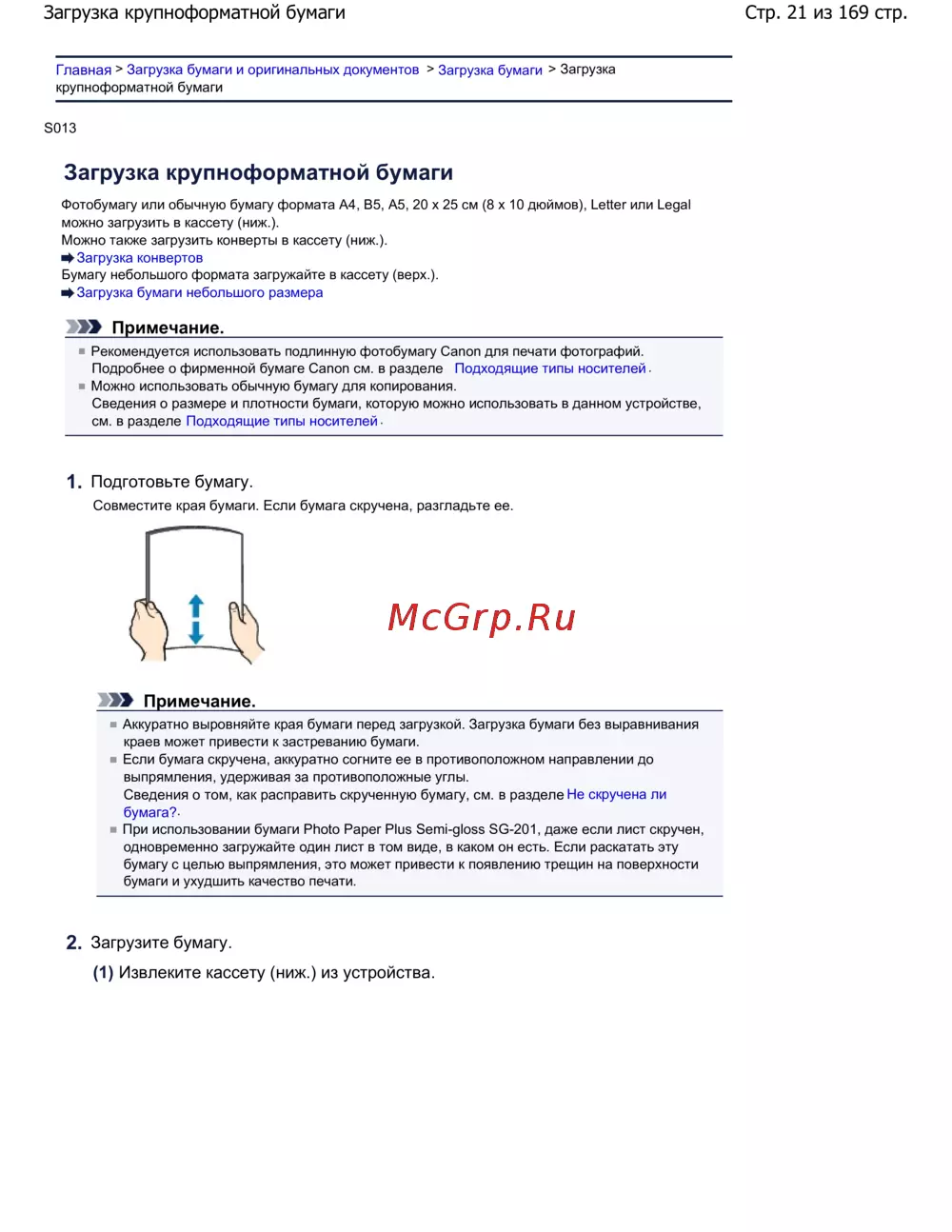 Стр. 21 из 169 стр.Загрузка крупноформатной бумаги