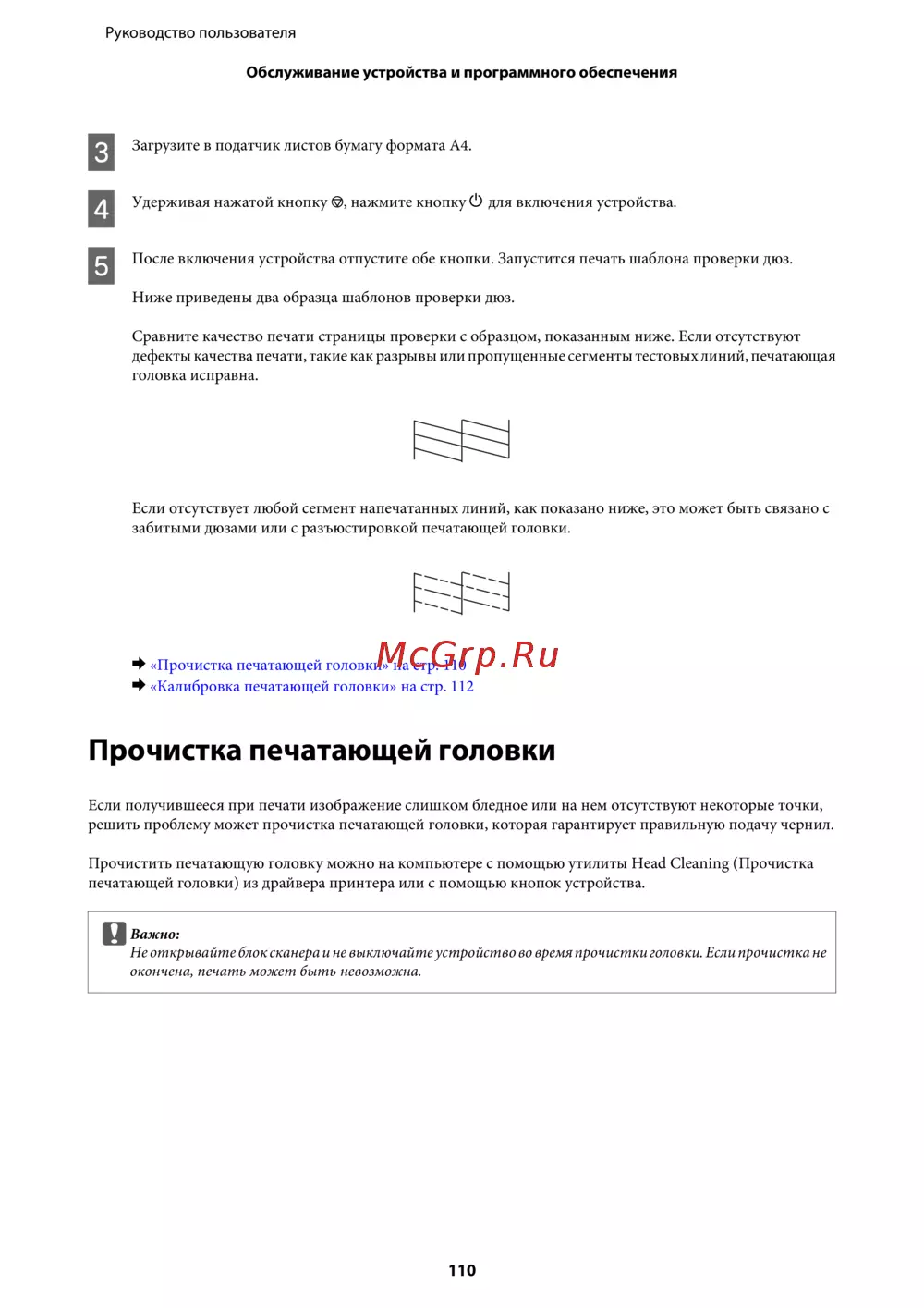печатающей головки) из драйвера принтера или с помощью кнопок устройства.