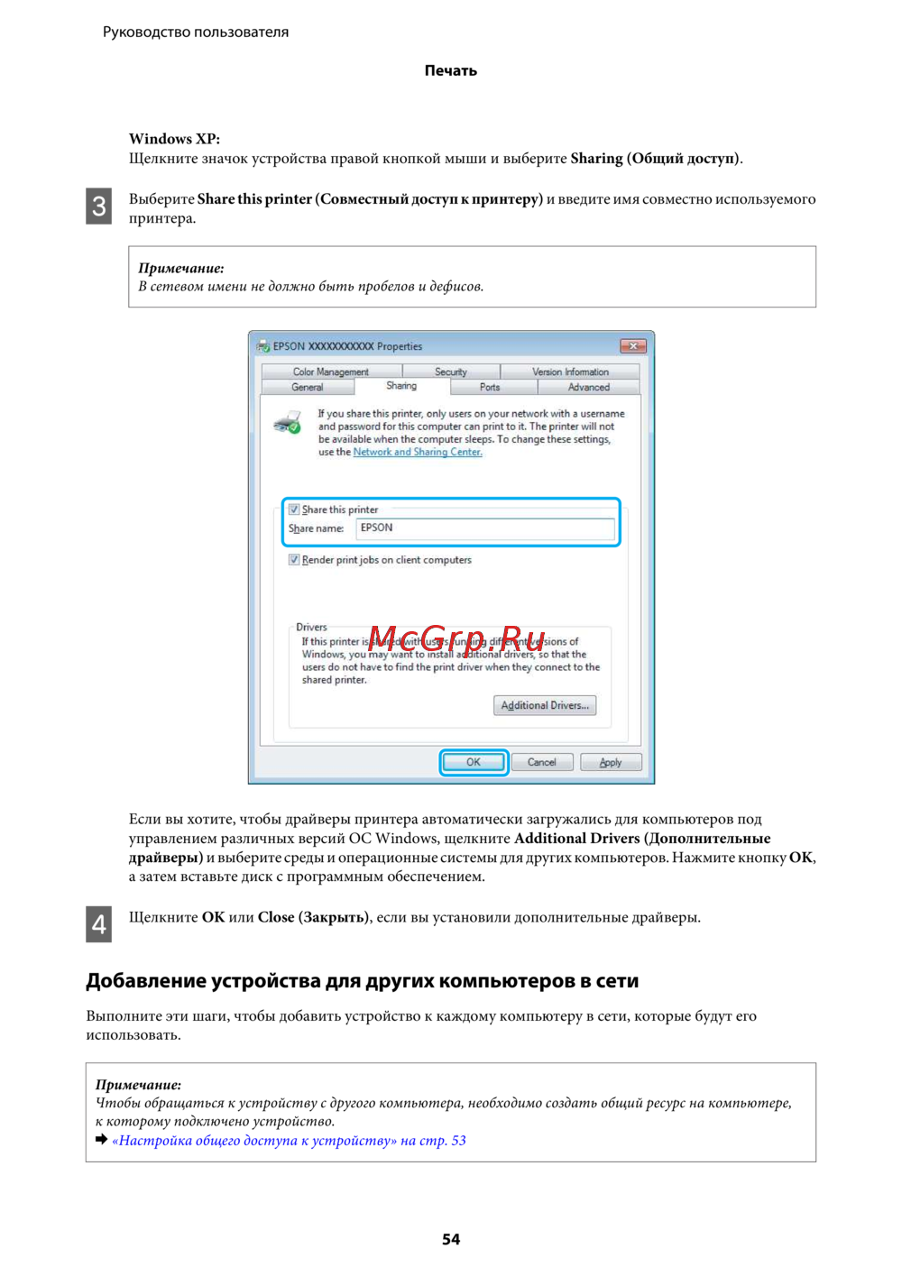 Узнайте, как настроить общий доступ к принтеру в Windows XP. Следуйте простым шагам для добавления устройства в сеть и установки дополнительных драйверов.