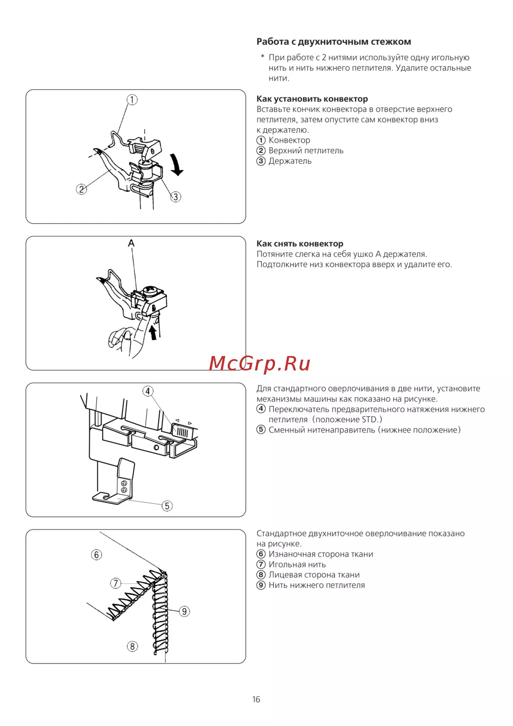 - Установки предварительного натяжения нижнего петлителя и сменного нитенаправителя p.16