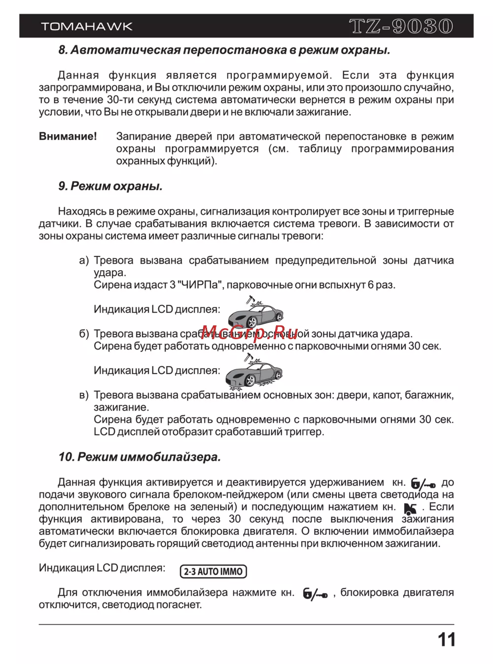 Tomahawk TZ-9030 — автоматическая охрана и иммобилайзер: функции и особенности [11/40]