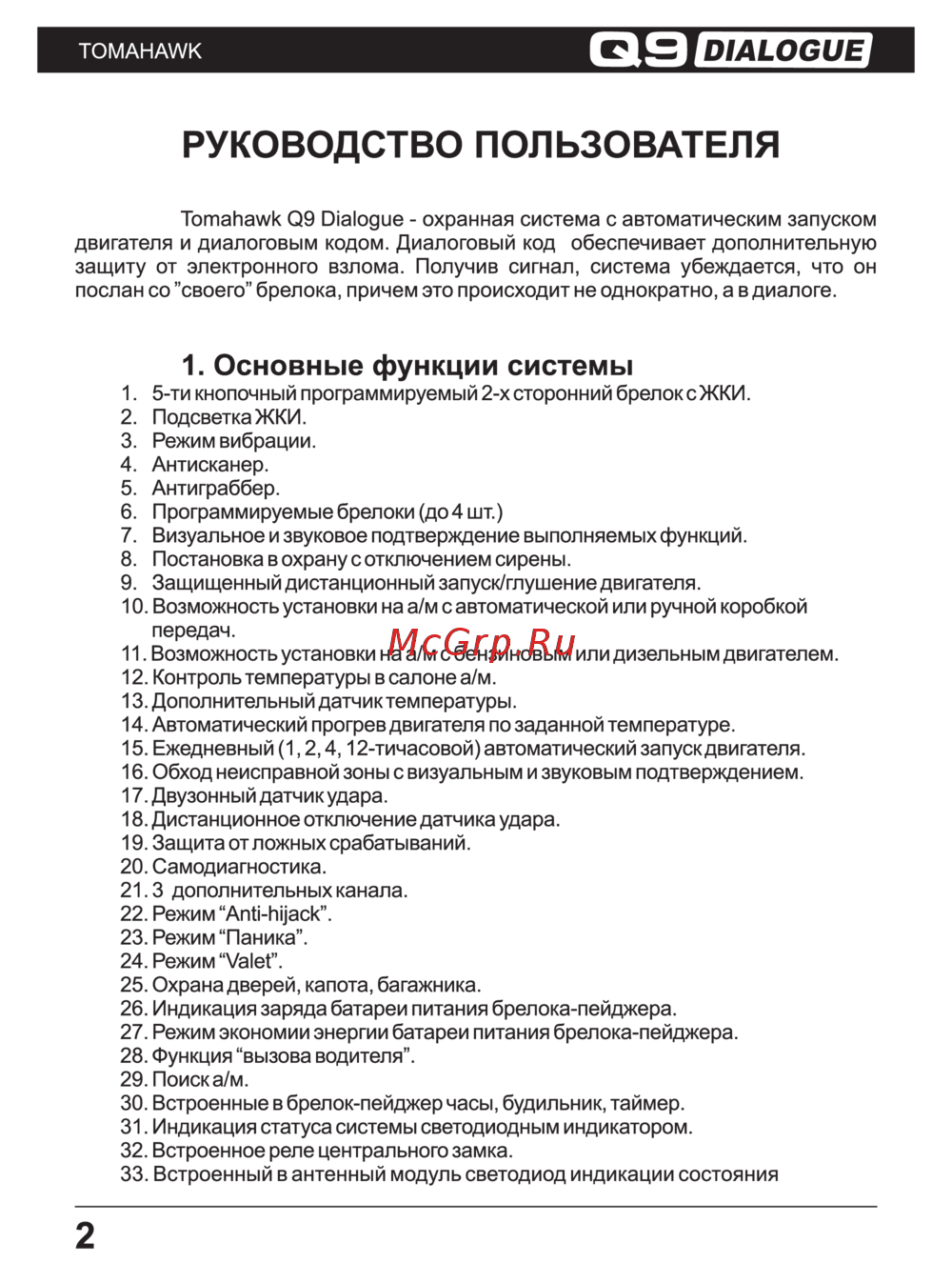 Tomahawk Q9 DIALOG Инструкция по эксплуатации онлайн [2/40] 256718