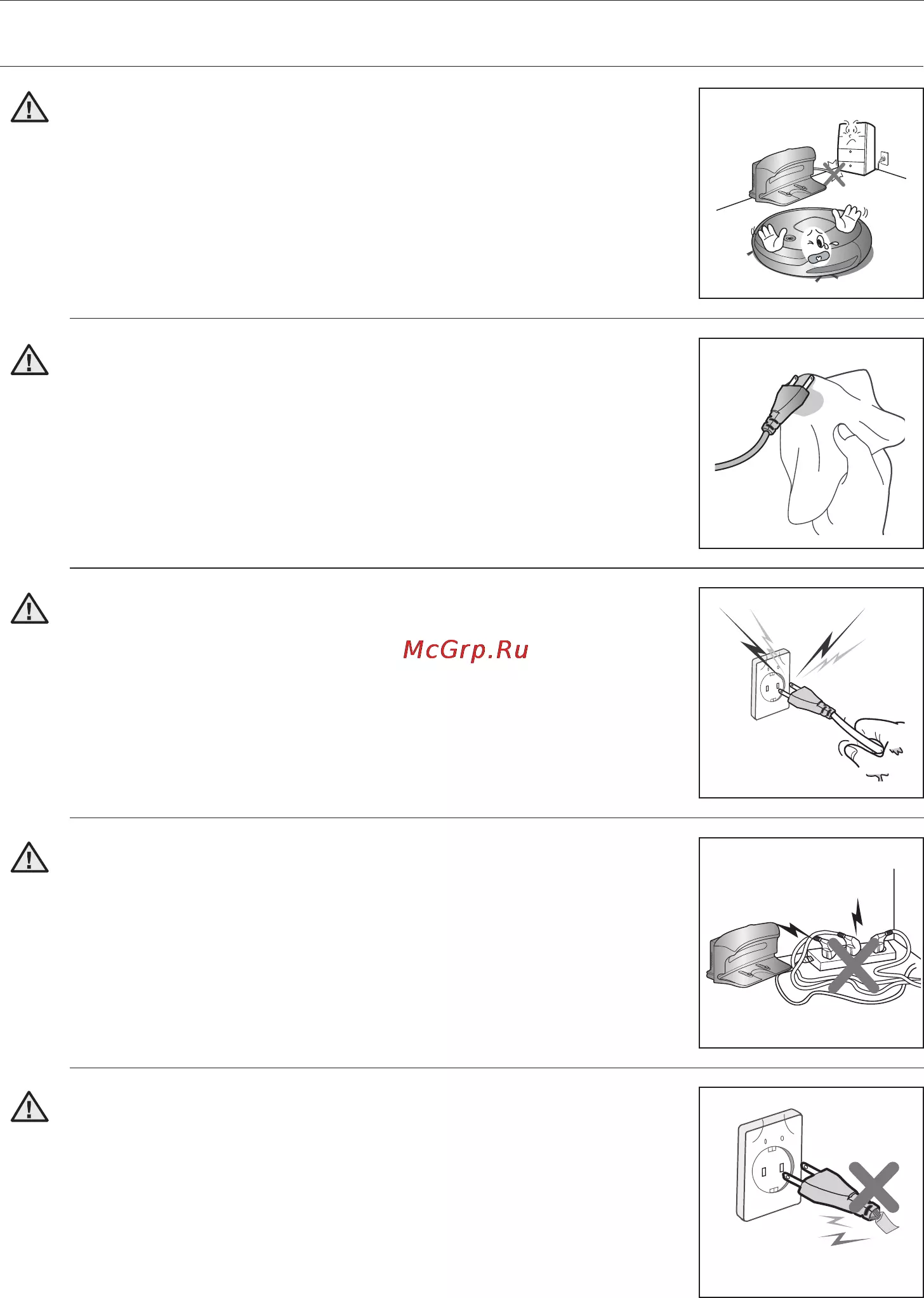 - Если ребенок или домашнее животное находится на пути роботизированного пылесоса то может быть распознан как препятствие и область рядом с ним не будет очищена p.8