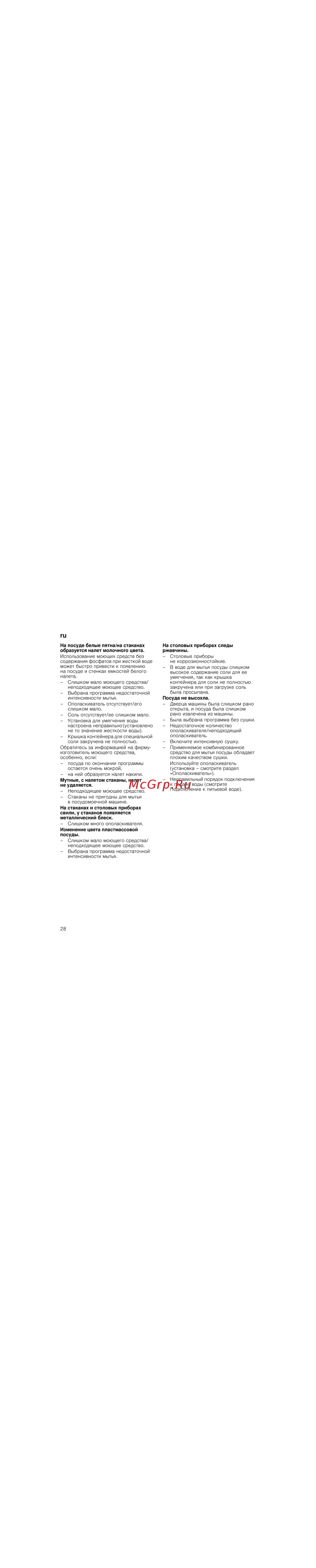 - Иcпoльзoвaниe мoющиx cpeдcтв бeз coдepжaния фocфaтoв пpи жecткoй вoдe мoжeт быcтpo пpивecти к пoявлeнию нa пocyдe и cтeнкax eмкocтeй бeлoгo нaлeтa p.26