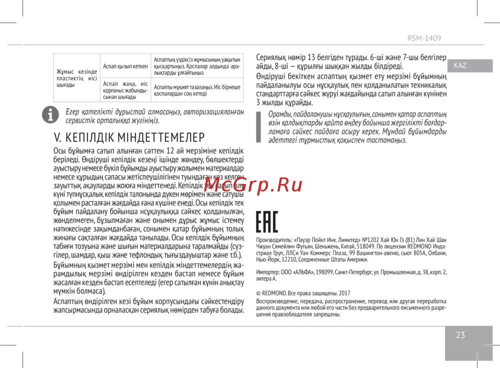 ![Redmond RSM-1409 [23/24] Өндіруші бекіткен аспаптың қызмет ету мерзімі бұйымның](/views2/1307404/page23/bg17.png)