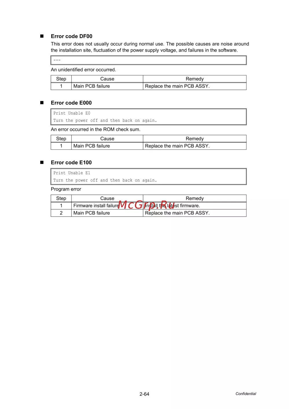 the installation site, fluctuation of the power supply voltage, and failures in the software.