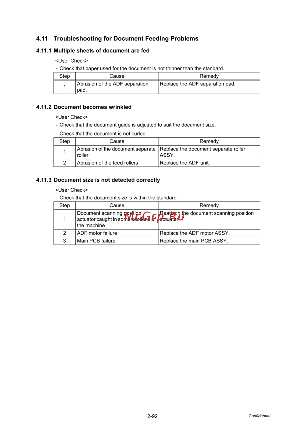 2 Abrasion of the feed rollers Replace the ADF unit.