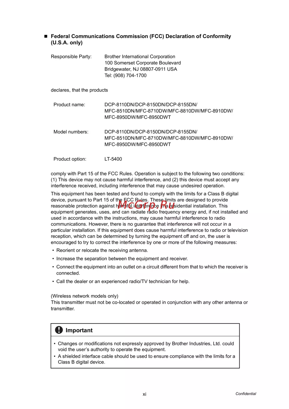 - Declaration of conformity europe only mfc 8510dn mfc 8520dn mfc 8950dwt only p.12
