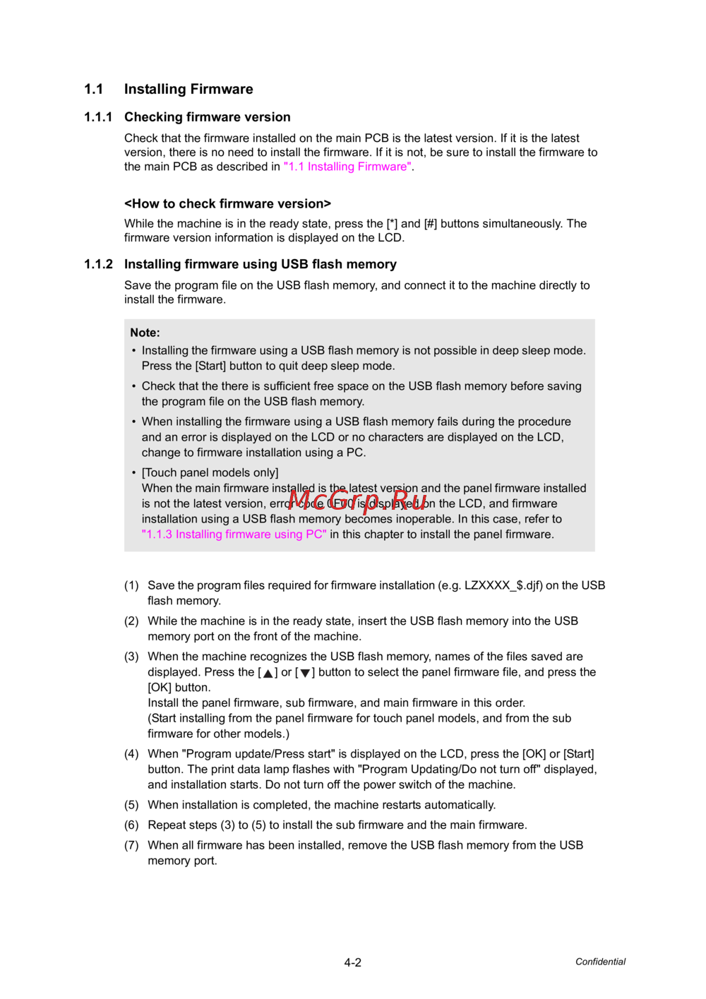 "1.1.3 Installing firmware using PC" in this chapter to install the panel firmware.