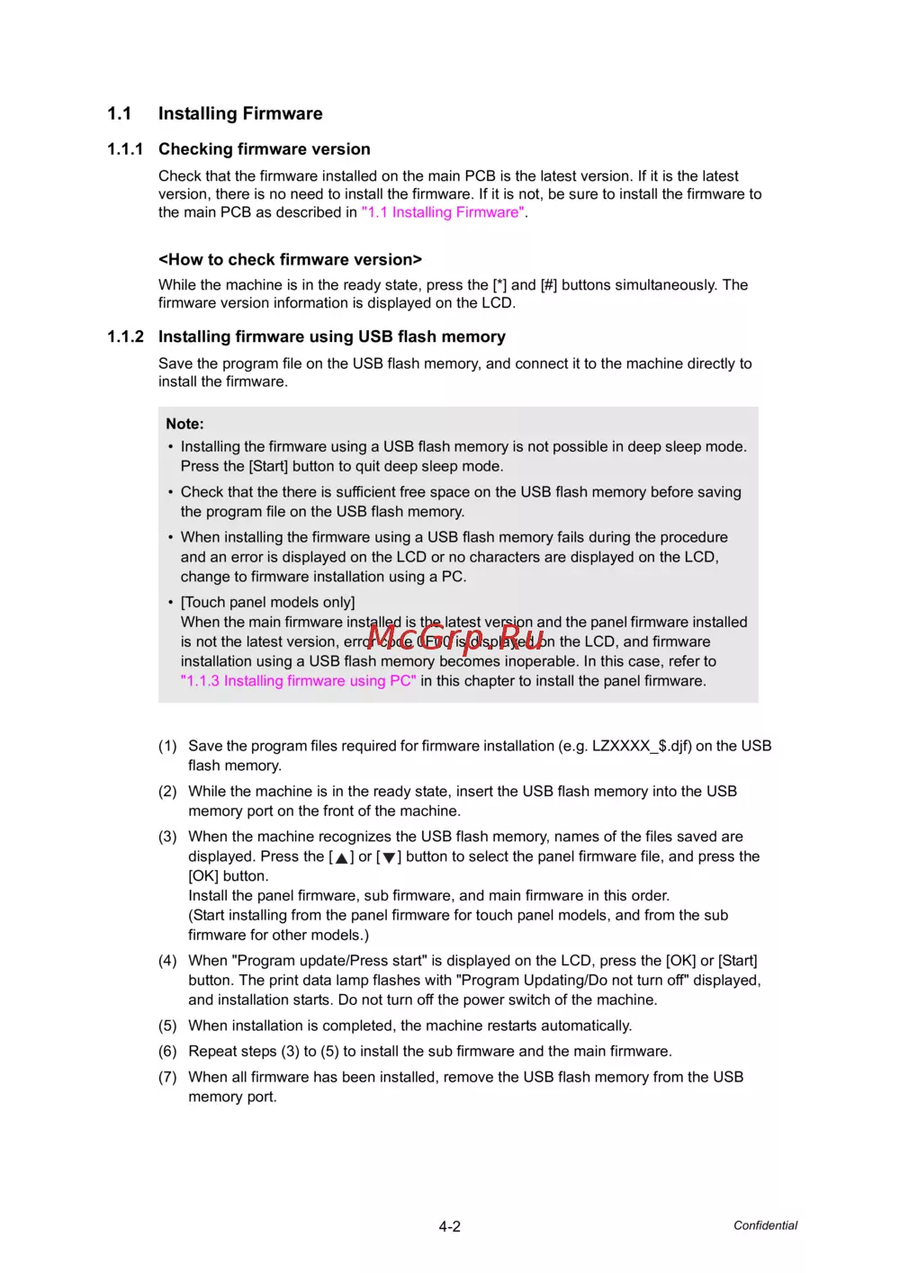 (6) Repeat steps (3) to (5) to install the sub firmware and the main firmware.
