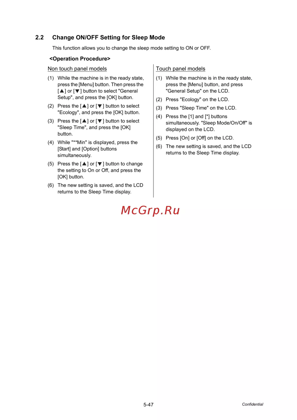 2.2 Change ON/OFF Setting for Sleep Mode