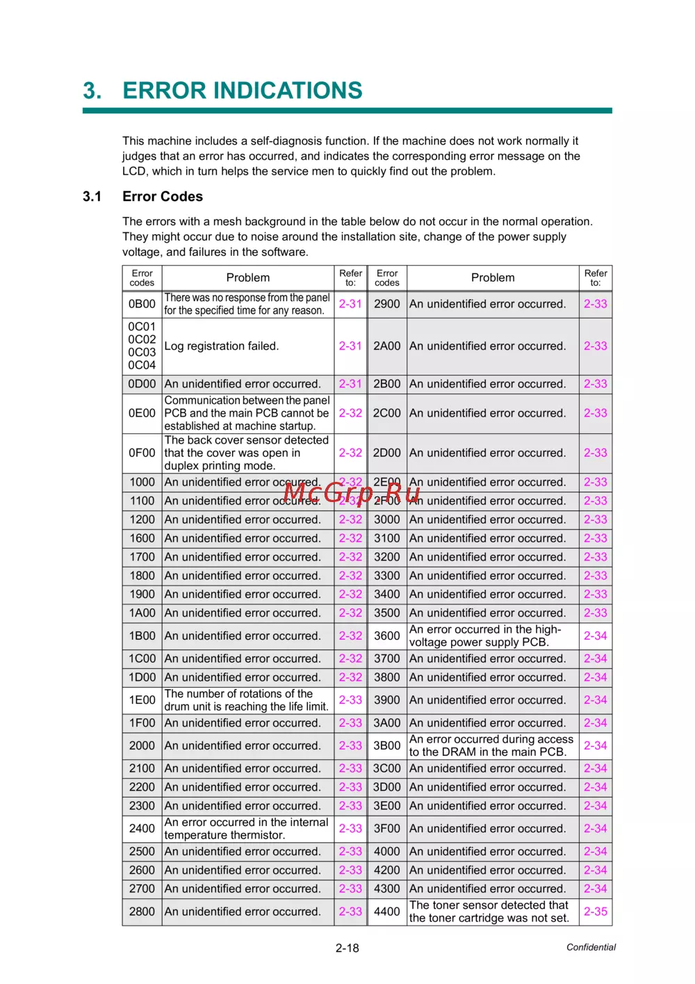 2300 An unidentified error occurred. 2-33 3E00 An unidentified error occurred. 2-34