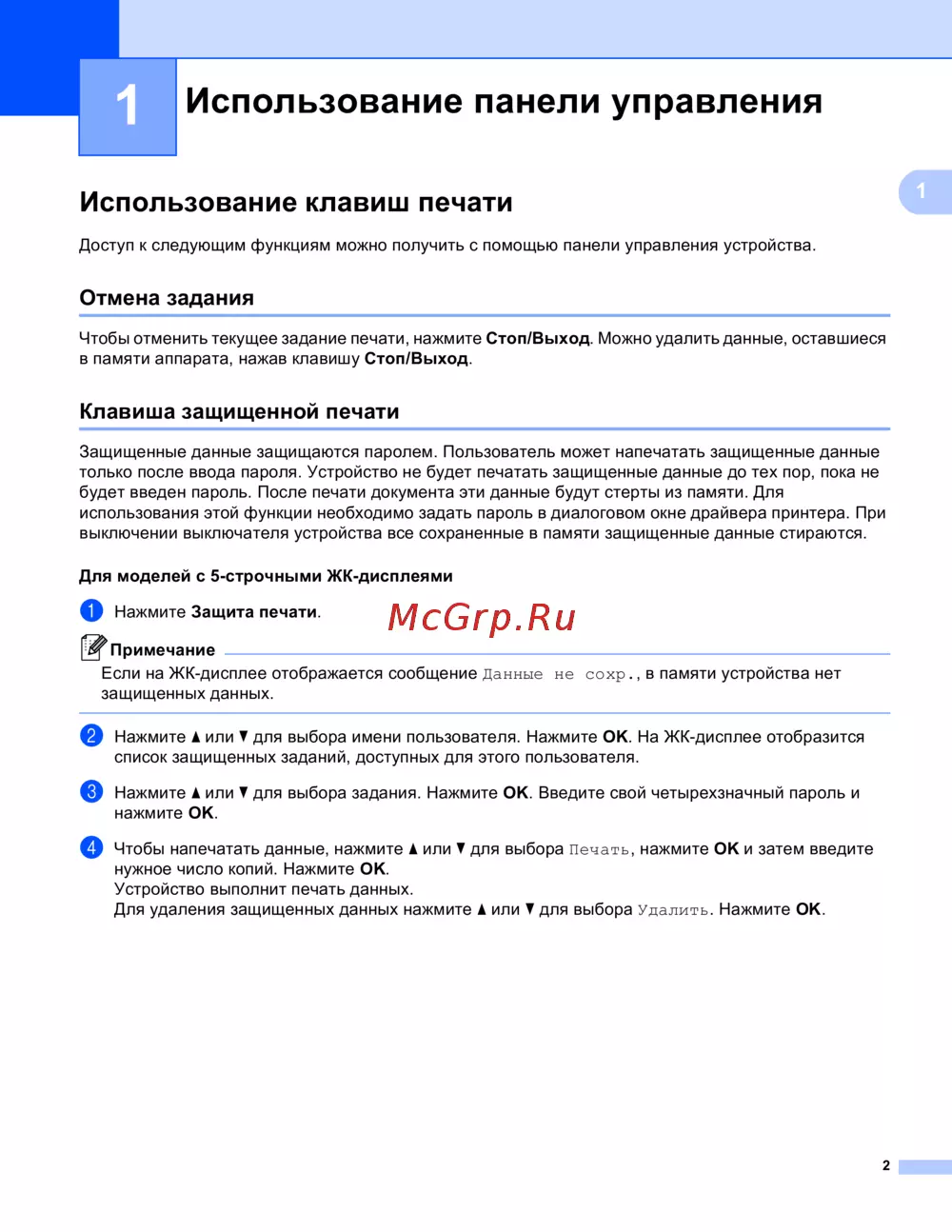 будет введен пароль. После печати документа эти данные будут стерты из памяти. Для
